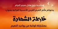 إعلان : الأمسية العزائية " خارطة الشهادة " - بمناسبة بزوغ هلال محرم الحرام - بمشاركة كوكبة من رواديد النعيم
