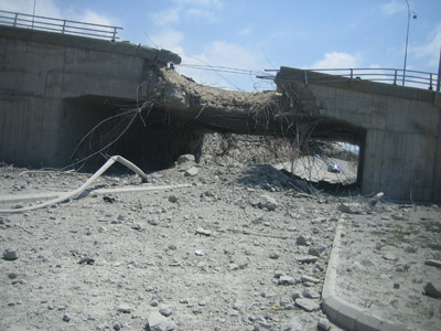 حيث دمر 15 ألف منزل – وهناك 184 ألف مشرد و120 جسراً و80%من المصانع دمرت وكم هائل من العاطلين يبلغ تكلفة اعمار البنية التحتية 4,5 مليار دولار.
