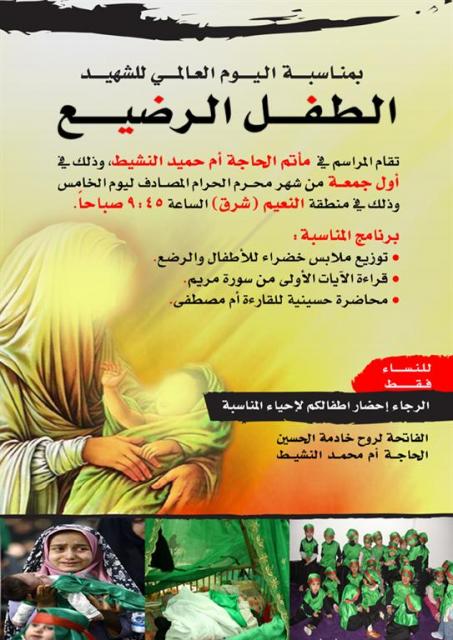 من الذي صام؟ الدرازيون أم النعيميون؟   |    في ذمة الله الشَّابة زهراء عبدالله ميرزا صالح   |   ذمة الله تعالى الحاجة جميلة حسن عبدالله    |   على السرير الأبيض الحاج خليل إبراهيم البزاز أبو منير    |   برنامج مأتم الجنوبي في ذكرى ولادة السيدة الزهراء    |   في ذمة الله حرم الحاج عبدالله سلمان العفو (أم ياسر)   |    في ذمة الله الطفلة زهراء جابر جاسم عباس   |   نبارك للأخ الطالب محمد حسن علي ثابت حصوله على الماجستير في إدارة الأعمال    |   رُزِقَ الأخ عبدالله علي آل رحمة || كوثر || 12/12/2021   |   دورة تغسيل الموتى    |