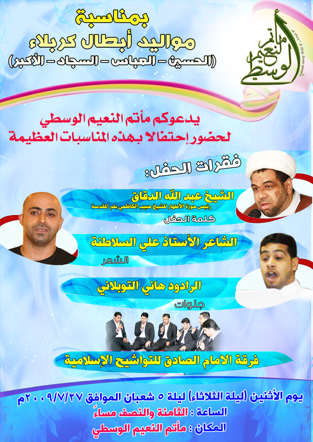 الاحتفال بمواليد أبطال كربلاء ( عليهم السلام ) في مأتم النعيم الوسطي