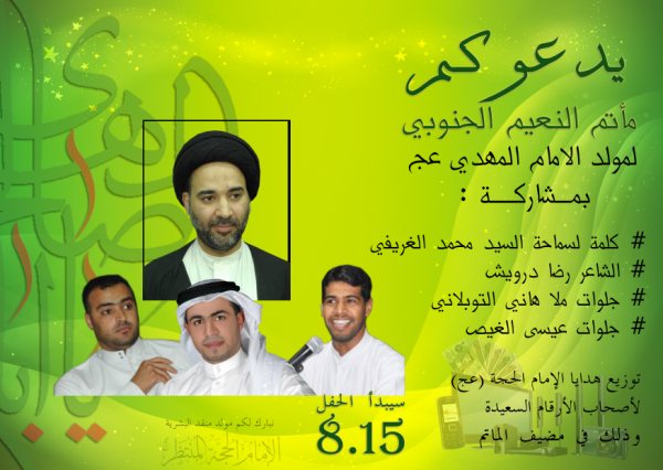 إعــلان ,, .. مـولـد الإمــام الـمنـتـظر .. ,, مـأتـم الـنعـيـم الـجـنـوبــي