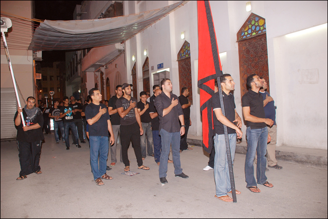 من مساء أمس خرج الموكب الحسيني من مأتم النعيم الغربي في الساعة العاشرة و النصف لتعزية صاحب العصر و الزمان بوفاة جدة الإمام محمد أبن على الباقر سلام الله علية و بأداء الردود الشاب