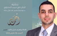 يتشرف الحاج علي حبيب الستراوي بدعوتكم لحضور عقد قرآن نجلة أحمد في قاعة إبراهيم خليل كانو ( القفول )الموافق 29 / 3 / 2014م في الساعة 7:30م