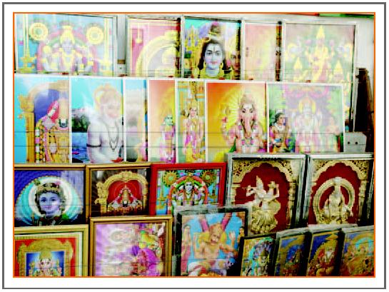 لم يكن الحارس في مكانه فدخلنا. انفتح الباب على ساحة كبيرة كلّ زاوية فيها مشغولة بأمر للتعبد: صورة كبيرة جداً لفيل بجسد إنسان وهو رمز رب الحكمة ''غانيشا'' الذي يذلل الصعوبات، والفيل الصغير يمثل دوراً ملائكياً وعاطفياً.