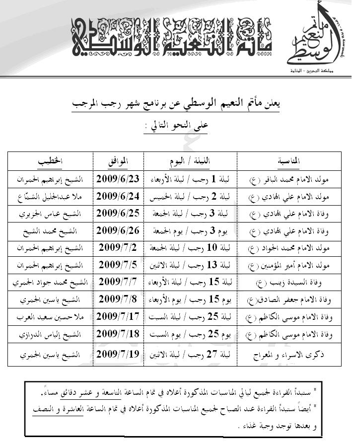 برنامج مأتم النـعـيم الوسـطي خلال شهر رجب المرجب