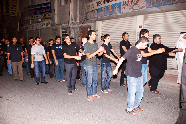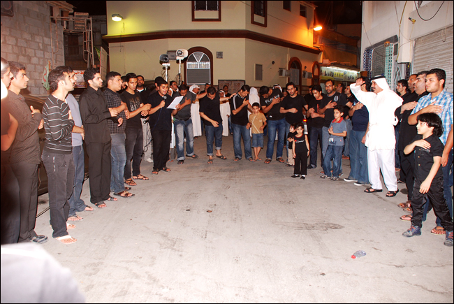 من مساء أمس خرج الموكب الحسيني من مأتم النعيم الغربي في الساعة العاشرة و النصف لتعزية صاحب العصر و الزمان بوفاة جدة الإمام محمد أبن على الباقر سلام الله علية و بأداء الردود الشاب
