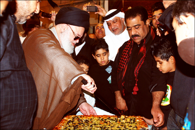 السيد عبدالله الغريفي يفتتح بتقطيع " البيتزا "
