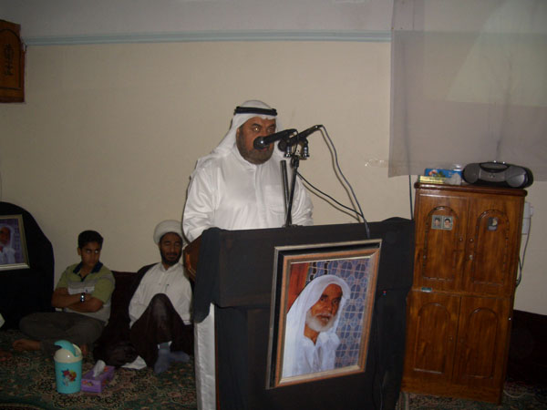 5- كلمة مجلس طلبة العلوم الدينية والتي ألقاها فضيلة الشيخ على رحمة وكانت عن كيفية مشاركة المرحوم في جميع مناسبات أهل المنطقة والتعامل الطيب مع جميع الفئات من الكبار الى الصغار.