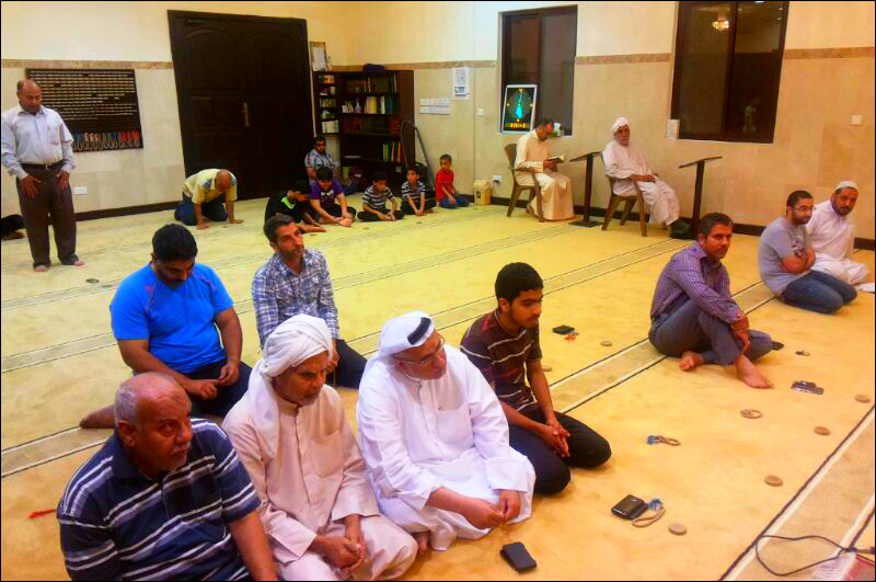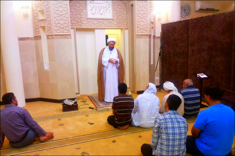 جانب من صلاة الجماعة بمسجد السيد محمد بإمامة سماحة الشيخ منير المعتوق - مساء الليلة / الثلاثاء في أسبوعة الأول 18 / 3 / 2014م ، حيث تطرق الشيخ في كلمته بين الفرضين إلى حث الآباء على أبنائهم لحضور صلاة الجماعة و تفعيلها بالمنطقة .