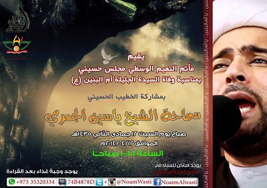 من الذي صام؟ الدرازيون أم النعيميون؟   |    في ذمة الله الشَّابة زهراء عبدالله ميرزا صالح   |   ذمة الله تعالى الحاجة جميلة حسن عبدالله    |   على السرير الأبيض الحاج خليل إبراهيم البزاز أبو منير    |   برنامج مأتم الجنوبي في ذكرى ولادة السيدة الزهراء    |   في ذمة الله حرم الحاج عبدالله سلمان العفو (أم ياسر)   |    في ذمة الله الطفلة زهراء جابر جاسم عباس   |   نبارك للأخ الطالب محمد حسن علي ثابت حصوله على الماجستير في إدارة الأعمال    |   رُزِقَ الأخ عبدالله علي آل رحمة || كوثر || 12/12/2021   |   دورة تغسيل الموتى    |