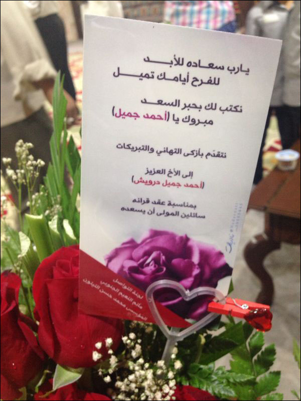 وسط لفيف من الأهالي والأصدقاء من مختلف الأرجاء ، احتفلت عائلة الشيخ كاظم درويش  بعقد قران أخيه